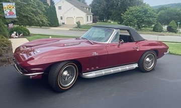 at the Carlisle auctions. It is no surprise that this maroon 1966 Corvette 427/425 Convertible will be offered for sale this year. Lot # 508.2 is an NCRS Top Flight award winner and will be sold on a Pennsylvania title. It features factory side exhaust, telescopic steering wheel, leather interior and more. The
