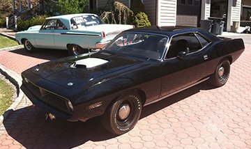 The importance of the Hemi Cuda in the muscle car world cannot be overstated. These cars go for astronomical prices. But here is a 1970 Plymouth Hemi Cuda for sale out of a private collection in New York that is special in every way. The seller says it has a matching numbers engine with a build sheet (broadcast sheet). It is an original TX9 Black car with a black interior and black hockey stripe. What is amazing about this car is that they say it still has only 17,000 miles from new. And he says it remains with original parts detailed properly. The woodgrain dash, steering wheel and console are shown in the photos. Notice it has the shaker hood. What a great look. How many black/black Hemi Cudas have you seen?